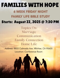Are you looking to strengthen your marriage, improve communication, and build deeper family connections? Join us for a special 6-week Life Group series called “Families with Hope”—a journey designed to inspire, encourage, and equip families to thrive with God’s guidance.
